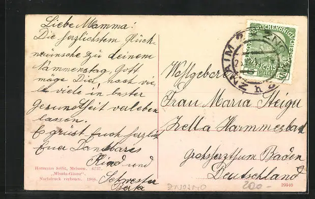 alte Ansichtskarte, gelaufen 1910, Einriss li. unten, guter Zustand