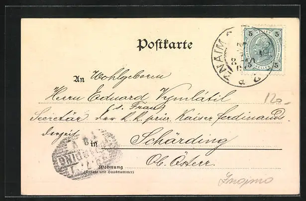gelaufen 1901, Bugspuren oben mittig, sonst guter Zustand