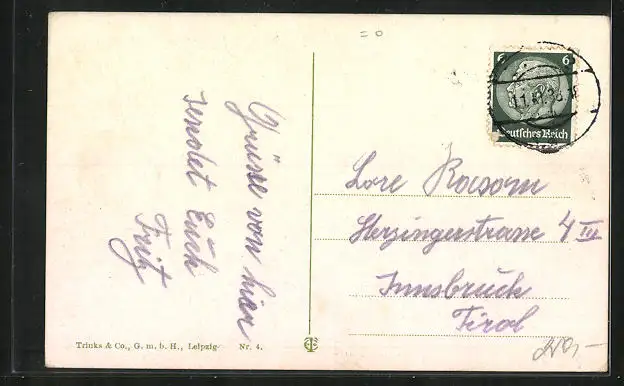 alte Ansichtskarte, gelaufen, Stempelspur, guter Zustand