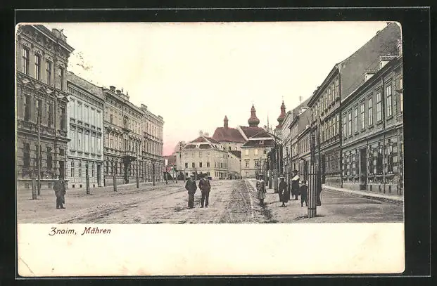 AK Znaim /Mähren, Strassenpartie mit Gebäudeansicht