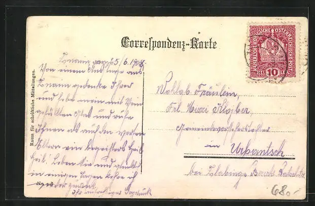 alte Ansichtskarte, gelaufen 1908, Eckknick li. unten, Stempelspur, guter Zustand