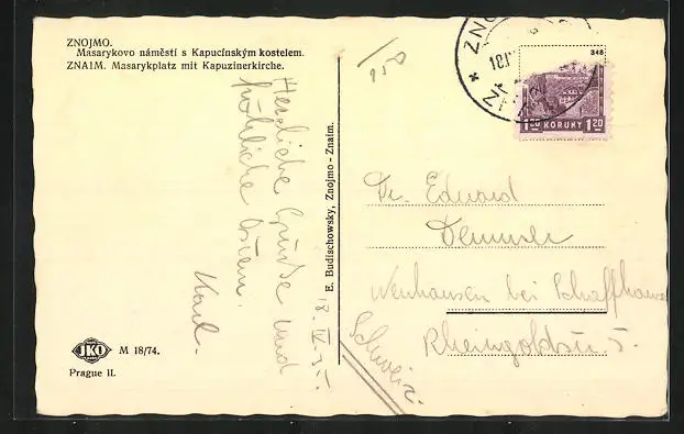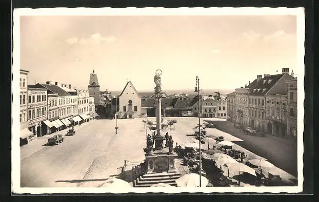 AK Znaim, Masarykplatz mit Kapuzinerkirche