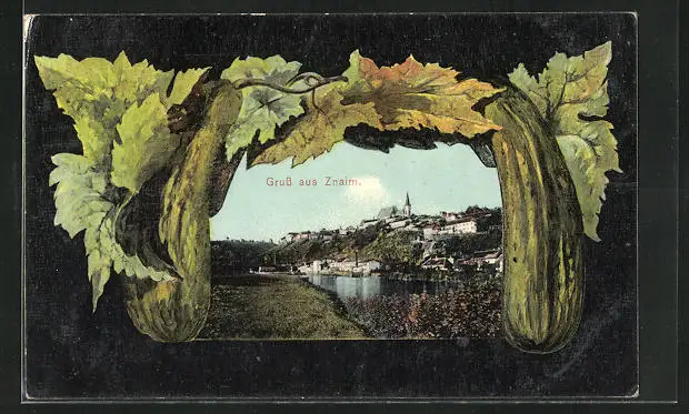 AK Znaim, Ortsansicht vom anderen Ufer aus