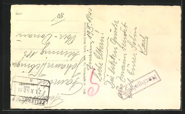 alte Ansichtskarte, gelaufen 1940 als Feldpost, guter Zustand
