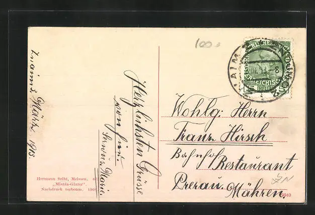alte Ansichtskarte, gelaufen 1913, Eckknicke oben, guter Zustand
