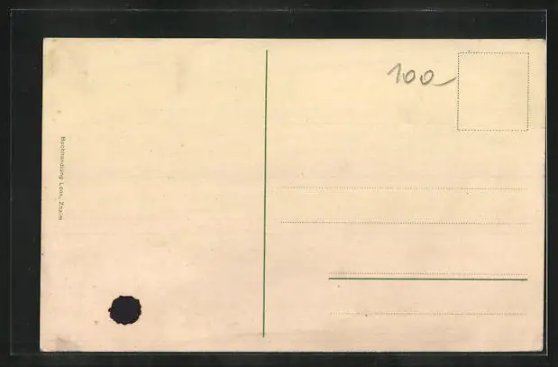 Personenbezogene Daten auf der Rückseite der Karte wurden durch blauen Textmarker unkenntlich gemacht. Die blauen Stellen sind auf die Vorderseite durchgeweicht und wirken sich negativ auf das Postkartenfoto aus
