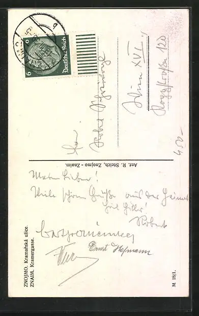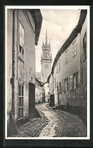 AK Znaim, Strasse Kramergasse mit Rathausturm