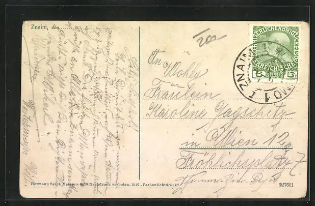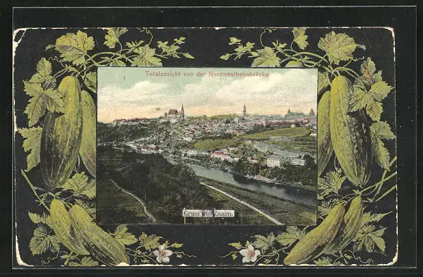 AK Znaim, Totalansicht von der Nordwestbahnbrücke