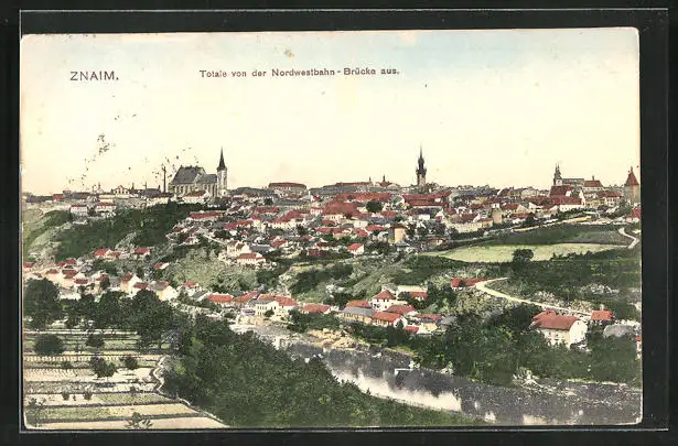 AK Znaim, Totalansicht von der Nordwestbahnbrücke aus