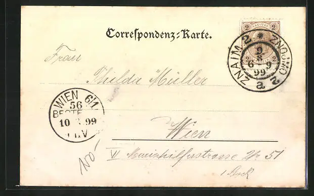 alte Ansichtskarte, gelaufen 1899, Stempelspur, guter Zustand