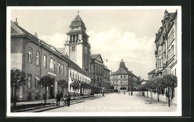 AK Znaim, Wienerstrasse mit Kreisgericht