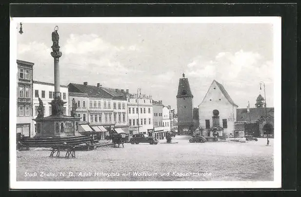 AK Znaim a. Thaya, platz mit Wolfsturm und Kapuzinerkirche