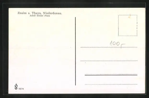 Personenbezogene Daten auf der Rückseite der Karte wurden durch blauen Textmarker unkenntlich gemacht. Die blauen Stellen sind auf die Vorderseite durchgeweicht und wirken sich negativ auf das Postkartenfoto aus