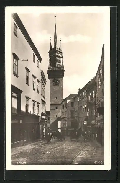 AK Znaim a.d. Thaya, auf der Strasse zum Rathausturm hin
