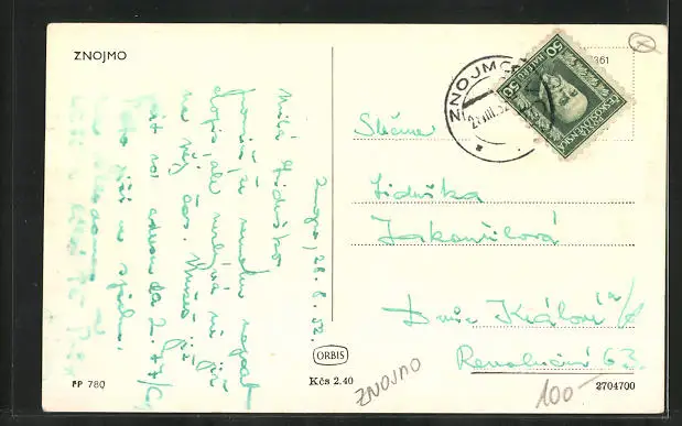 gelaufen 1952, leicht fleckig, sonst guter Zustand