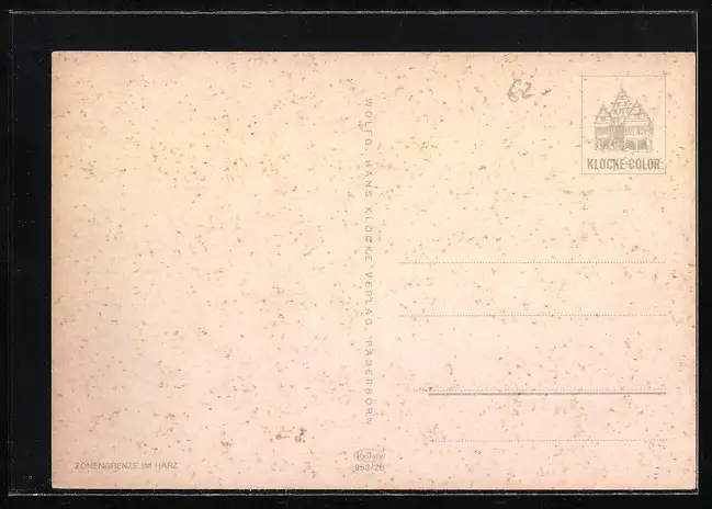 Personenbezogene Daten auf der Rückseite der Karte wurden durch blauen Textmarker unkenntlich gemacht. Die blauen Stellen sind auf die Vorderseite durchgeweicht und wirken sich negativ auf das Postkartenfoto aus