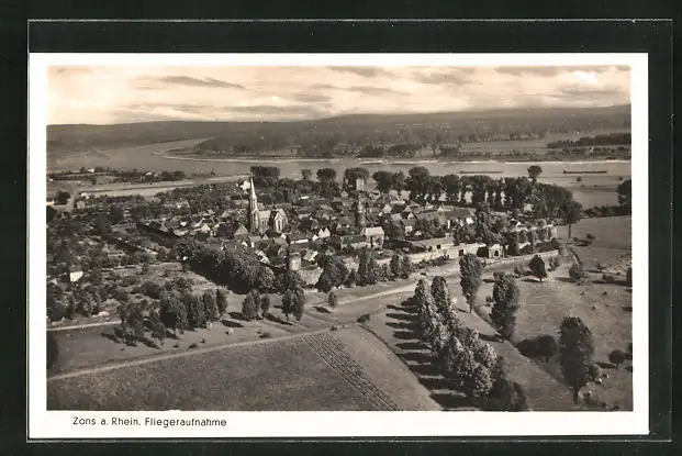 AK Zons / Rhein, Totalansicht, Fliegeraufnahme