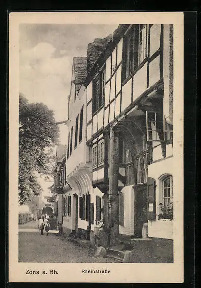 AK Zons a. Rh., Häuser im Fachwerkstil in der Rheinstrasse