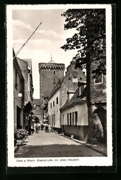 AK Zons a. Rh., Rheinstrasse mit alten Häusern
