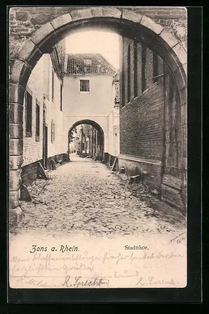 AK Zons a. Rhein, Blick durch das Stadtthor