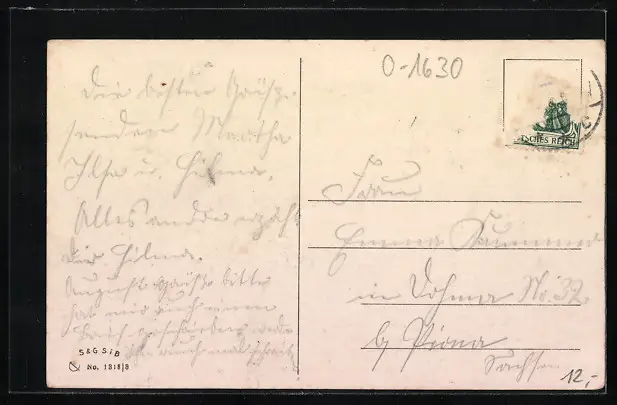 alte Ansichtskarte, gelaufen, Briefmarke entfernt, guter Zustand
