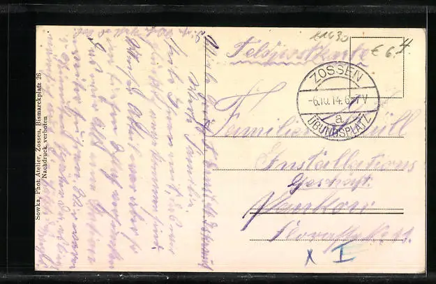 alte Ansichtskarte, gelaufen 1914 als Feldpost, guter Zustand