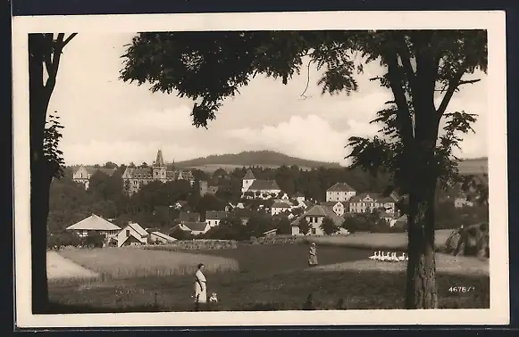 AK Zruc n. Sázavou, Ortsansicht und Gänsehirtin