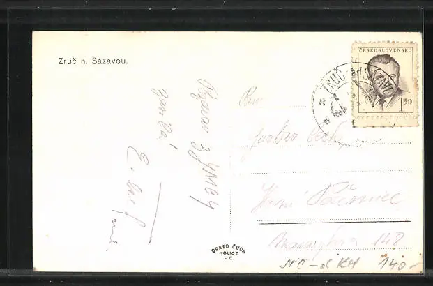 AK Zruc nad Sázavou, Gesamtansicht aus der Vogelschau
