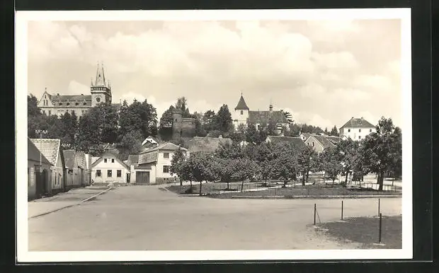 AK Zruc nad Sázavou, Teilansicht vom Ortsplatz aus