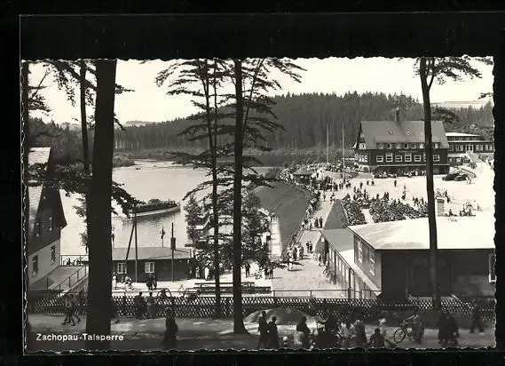 AK Zschopau, Talsperre mit Häusern und Dampfer