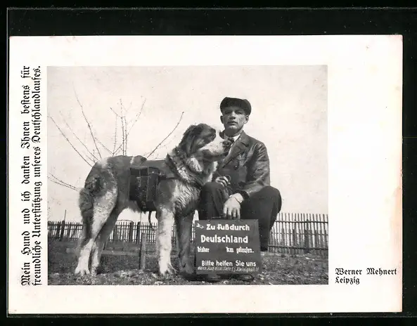 AK Zu Fuss durch Deutschland, Wanderer mit seinem Bernhardiner