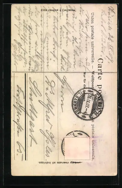 alte Ansichtskarte, gelaufen 1907, Briefmarke entfernt, guter Zustand