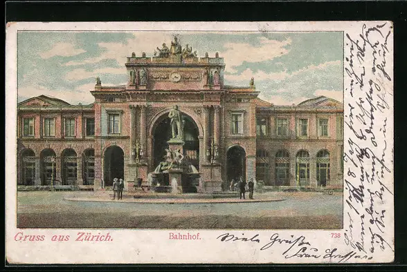 AK Zürich, Ansicht vom Bahnhofsgebäude