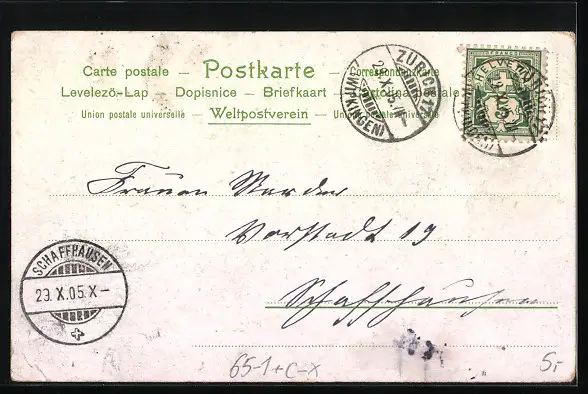 gelaufen 1905, Abriebspur u. minim. Einriss oben re., guter Zustand