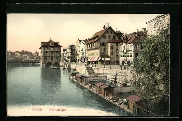 AK Zürich, Ansicht vom Rathausquai