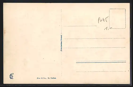 Personenbezogene Daten auf der Rückseite der Karte wurden durch blauen Textmarker unkenntlich gemacht. Die blauen Stellen sind auf die Vorderseite durchgeweicht und wirken sich negativ auf das Postkartenfoto aus