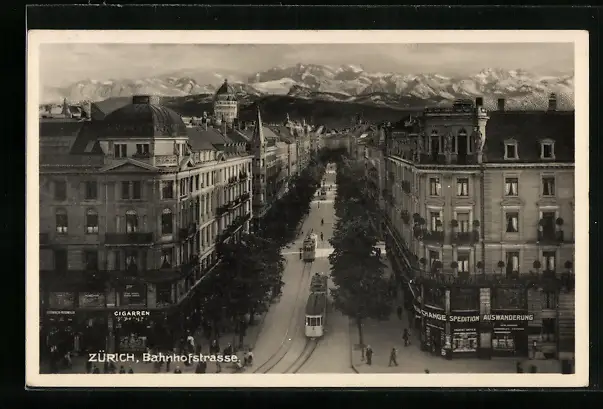 AK Zürich, Bahnhofstrasse mit Geschäften und Strassenbahn