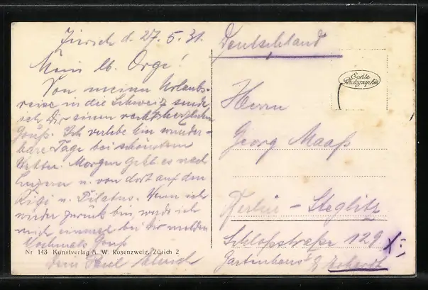alte Ansichtskarte, gelaufen 1931, Briefmarke entfernt, guter Zustand