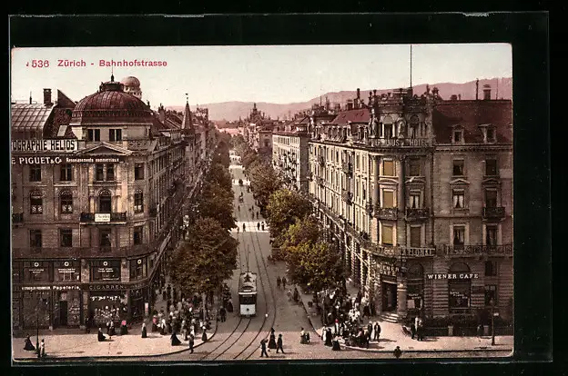 AK Zürich, Bahnhofstrasse mit Strassenbahn
