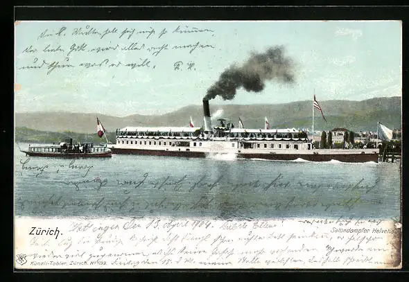 AK Zürich, Dampfer Helvetia bei der Hafeneinfahrt