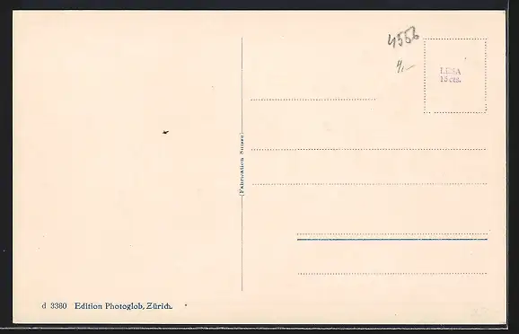 Personenbezogene Daten auf der Rückseite der Karte wurden durch blauen Textmarker unkenntlich gemacht. Die blauen Stellen sind auf die Vorderseite durchgeweicht und wirken sich negativ auf das Postkartenfoto aus