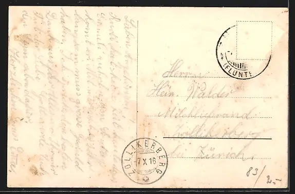 gelaufen 1916, Briefmarke entfernt, guter Zustand
