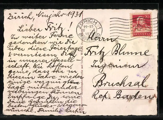 alte Ansichtskarte, gelaufen 1931, Eckknicke li., guter Zustand
