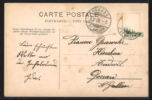 alte Ansichtskarte, gelaufen 1906, Briefmarke entfernt, guter Zustand