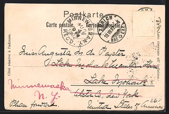 gelaufen 1902, Briefmarke entfernt, Eckknick li. unten, Stempelspur, guter Zustand
