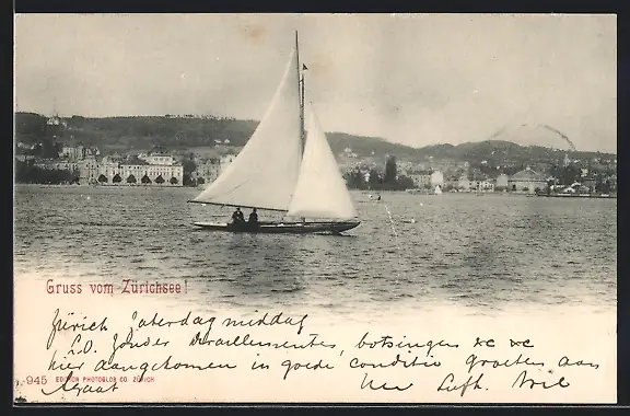 AK Zürich, Panorama, Segelboot auf dem Zürichsee