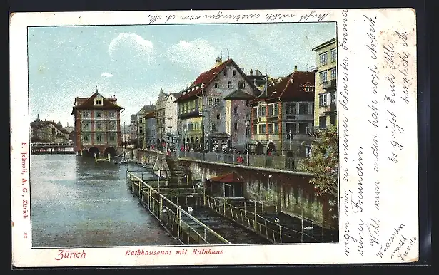 AK Zürich, Rathausquai mit Rathaus