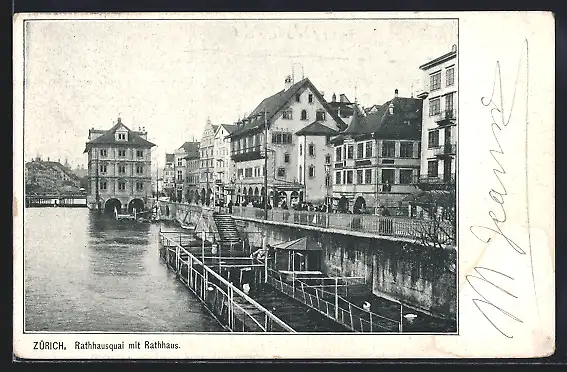 AK Zürich, Rathausquai mit Rathaus
