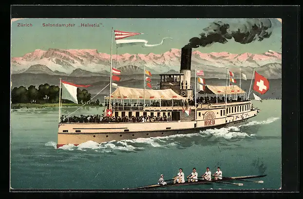 AK Zürich, Salondampfer Helvetia in Fahrt