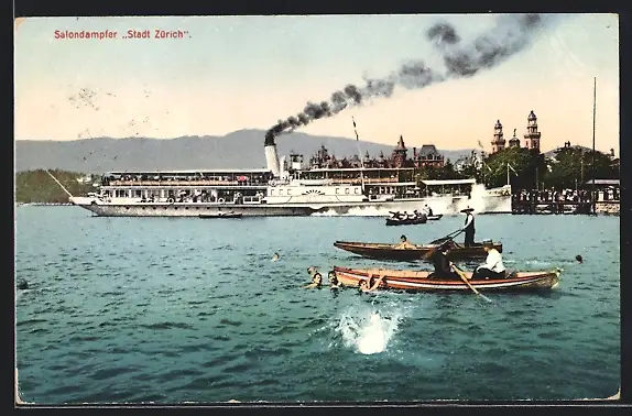 AK Zürich, Salondampfer Stadt Zürich, Ruderboote